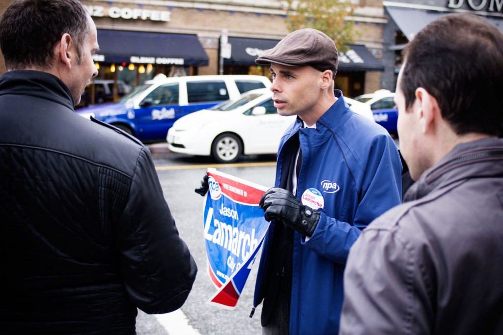 I waited for him at the West End candidates debate - perhaps the most significant event of his campaign, held in his very own neighbourhood. He had often told me that the West End was key to victory, but he stayed home rather than confront another assault by the media, who turned the NPA platform announcement earlier that day into the Jason Lamarche show.