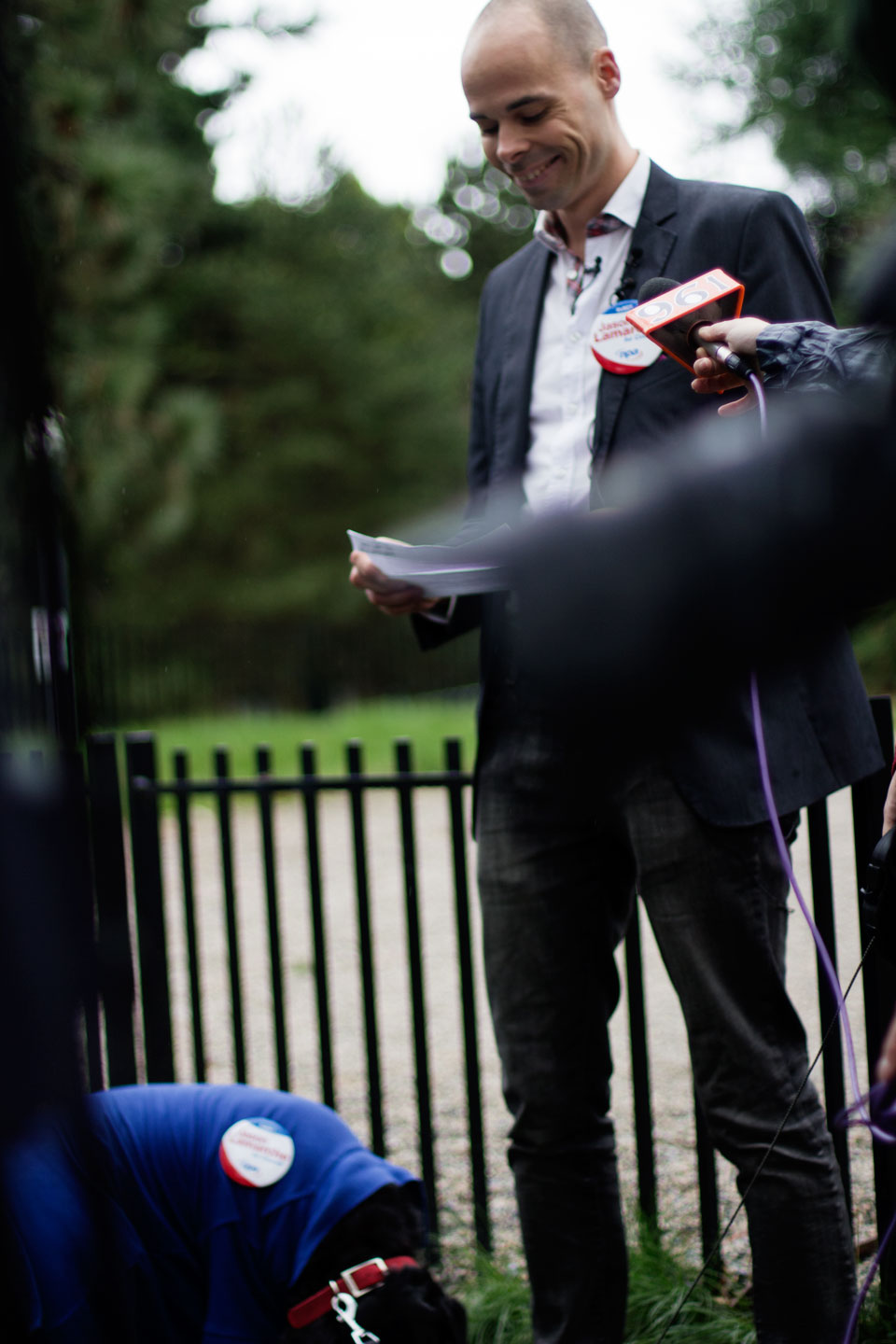 Cue the Puppy Presser. A slick media moment if I’d ever seen one - Lamarche’s black lab Cletus decked out in a t-shirt and “Vote Lamarche” button, goaded to “speak” for the cameras if he supported his master’s plan to ban the retail sale of dogs. In spite of my relentless prodding, Lamarche held firm to the claim that the press conference was not a calculating attempt to grab headlines, but rather an honest reflection of his desire to help animals.