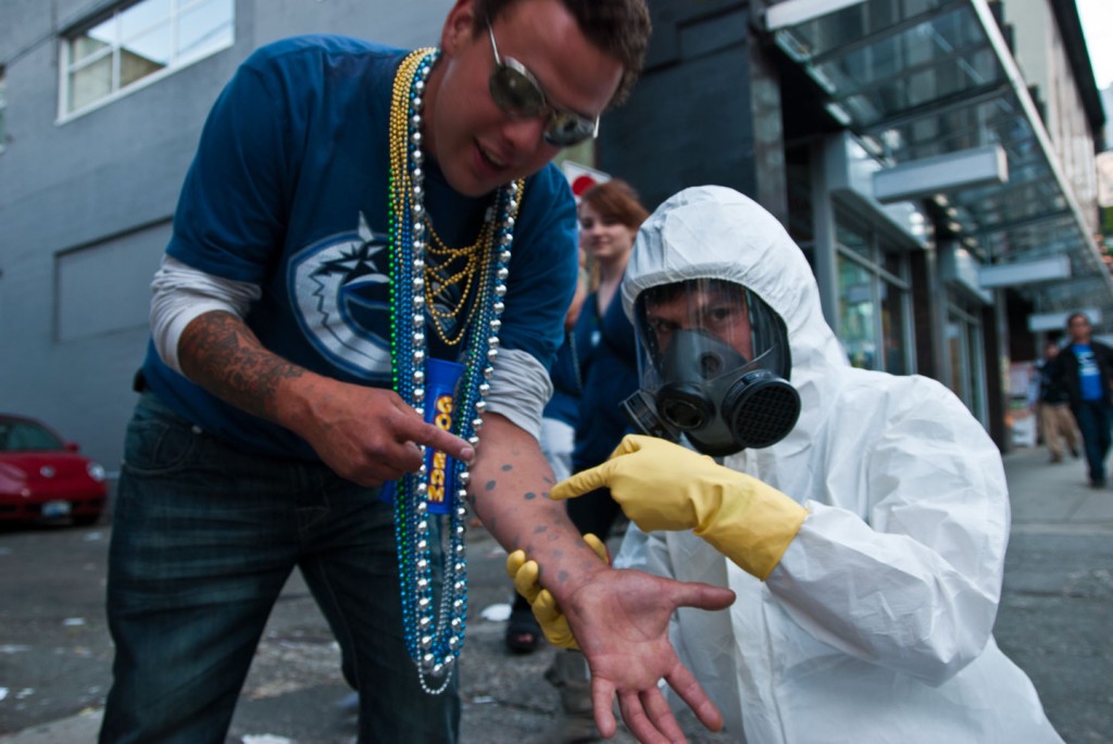 The reason for the disease’s bizarre physical and neurological effects are unknown, however it appears similar in effect to the Olympic Fever Pandemic of 2010. Luckily, the rest of the country remains largely unaffected; for this reason, it is presumed that the Rocky Mountains provide an effective barrier against the spread of this highly pathogenic invader. Drunk in Vancouver pathologists currently have no concrete evidence as to how the disease is carried, but it is suspected that the most common form of transmission is simple palm-to-palm contact.